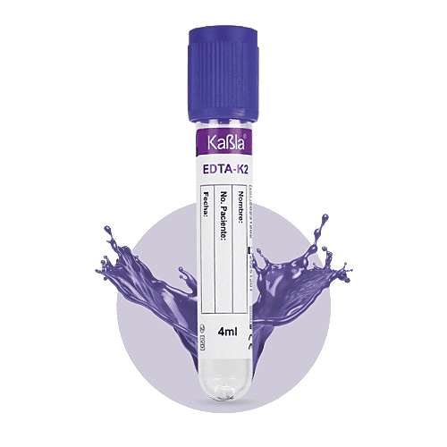 Tubo lila al vacío tipo vacutainer EDTA K2 13x75mm 4 ml, plástico PET - Gradilla con 100 piezas - Kabla