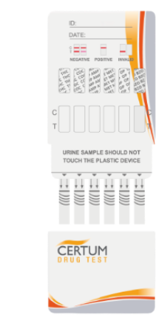 La prueba de drogas multiscreen de CERTUM en formato de tarjeta (Dip Card) se encuentra disponible en presentaciones de 2, 3, 5 y 6 hasta 12 parámetros, en diferentes combinaciones. La prueba de drogas en panel es un formato sumamente económico y confiable para detectar el consumo de drogas en orina. Nuestras pruebas ofrecen la mayor confiabilidad, resultados rápidos y el método más práctico disponible en el mercado.