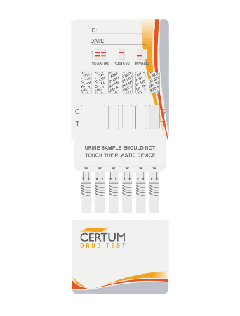 La prueba de drogas multiscreen de CERTUM en formato de tarjeta (Dip Card) se encuentra disponible en presentaciones de 2, 3, 5 y 6 hasta 12 parámetros, en diferentes combinaciones. La prueba de drogas en panel es un formato sumamente económico y confiable para detectar el consumo de drogas en orina. Nuestras pruebas ofrecen la mayor confiabilidad, resultados rápidos y el método más práctico disponible en el mercado.